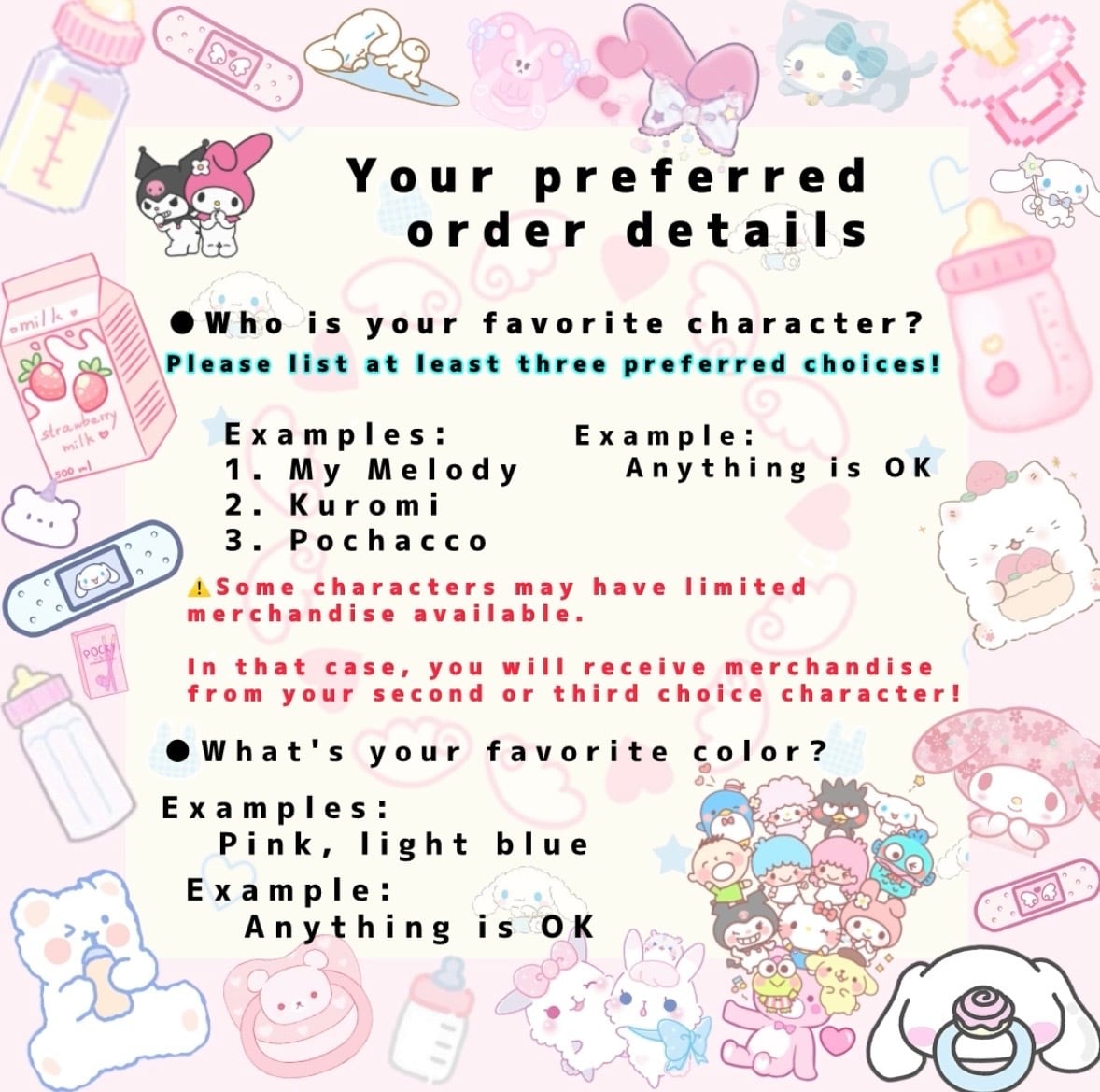 Check the product image page to see how to order (⁎ᴗ͈ˬᴗ͈⁎)